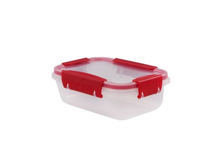 За счет впаянного в крышку уплотнителя и замков-защелок контейнер 100% герметичен. Полностью съемные замки обеспечивают более плотное и лучшее закрытие крышки, также увеличивают срок службы закрывающего механизма. Во время подогрева еды в микроволновой печи эти замки не нагреваются, в отличие от остального пластика, и за них можно удобно переносить контейнер.