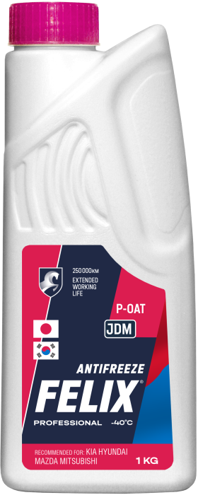 Антифриз FELIX JDM 1 кг – профессиональный лобридный антифриз, используемый для заливки в новые автомобили Hyundai-KIA, произведённые с ноября 2020 г.Специально адаптированный присадочный пакет обеспечивает долговременную защиту двигателя от замерзания, кипения и коррозии и продлевает срок службы системы охлаждения.