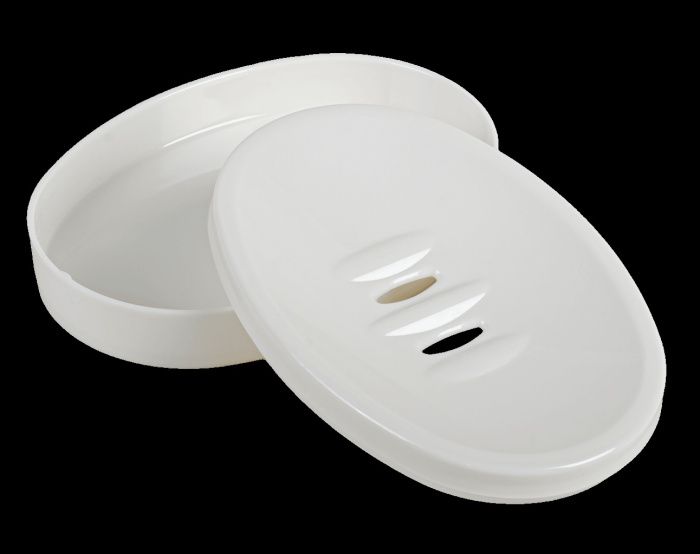 Рельефное дно с небольшими выступами обеспечивает циркуляцию воздуха и сток воды – мыло остаётся сухим и аккуратным.