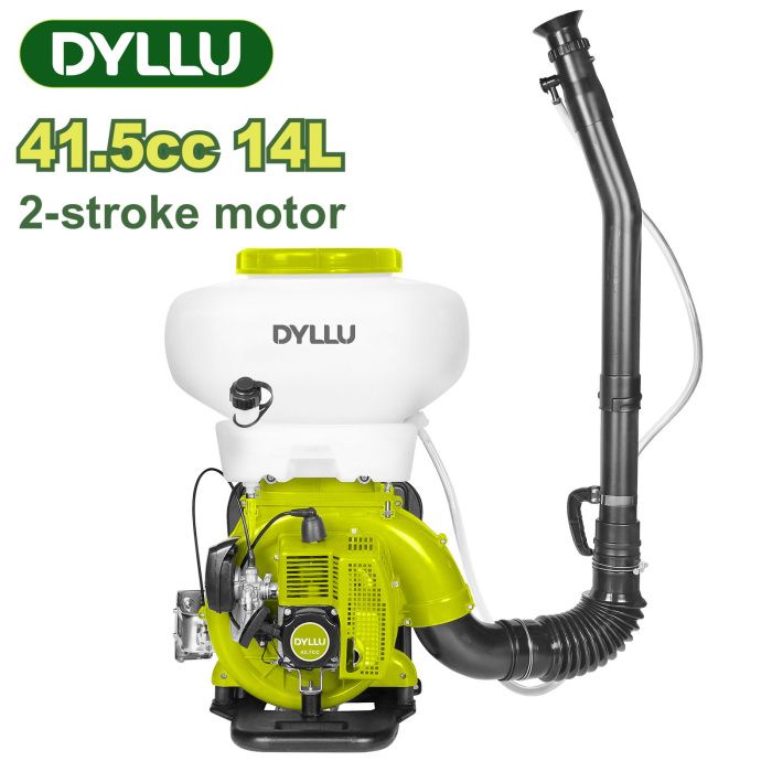 - Бензиновый опрыскиватель DYLLU DTKN1A41 с баком объёмом 14 литров предназначен для эффективной обработки растений и территорий жидкими и порошковыми составами.
