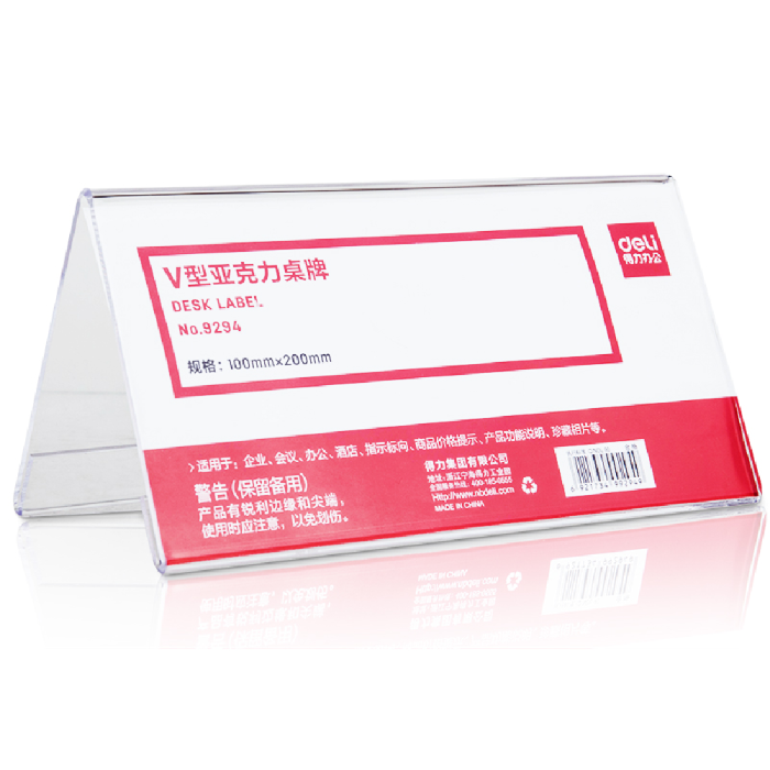 Бейдж настольный "Deli", 100x200 мм, прозрачный