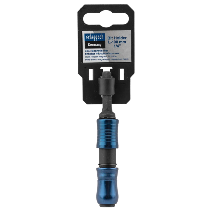 Битодержатель магнитный быстросъёмный Scheppach модель 0463 с размером 1/4"х110 мм — это надёжный адаптер для эффективной передачи крутящего момента от шуруповёрта или другого приводного инструмента к сменным битам и насадкам. Оснащённый шестигранным хвостовиком 1/4 дюйма, он совместим с большинством современных электроинструментов. Магнитный механизм обеспечивает уверенную фиксацию бит, предотвращая их выпадение во время работы, а быстросъёмная конструкция позволяет оперативно менять оснастку. Длина 110 мм обеспечивает удобный доступ к крепежу в стеснённых условиях и достаточный вылет для работы в глубине. Битодержатель выполнен из прочной стали, устойчив к износу и предназначен для интенсивного использования в ремонте, сборке, автосервисе и бытовых задачах. Этот инструмент повышает эффективность и безопасность работы, сокращает время на замену насадок и является неотъемлемым аксессуаром в наборе любого мастера.