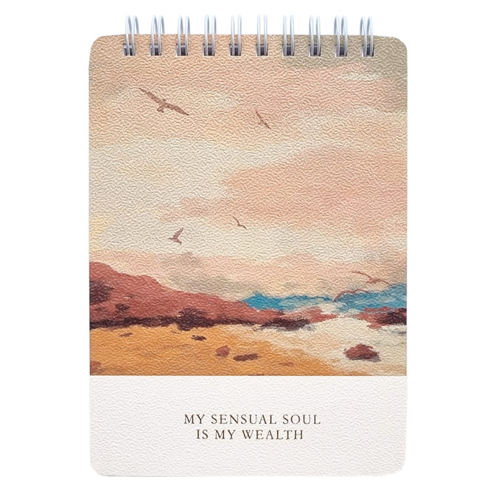 Блокнот на спирали "View пляж". Обложка из картона плотностью 400 г/м2 с ламинацией. Внутренний блок: бумага 100% белизны, плотностью 65г/м2. Дизайн внутреннего блока "в клетку". Углы обложки скруглены. Особенности: тиснение золотой фольгой.