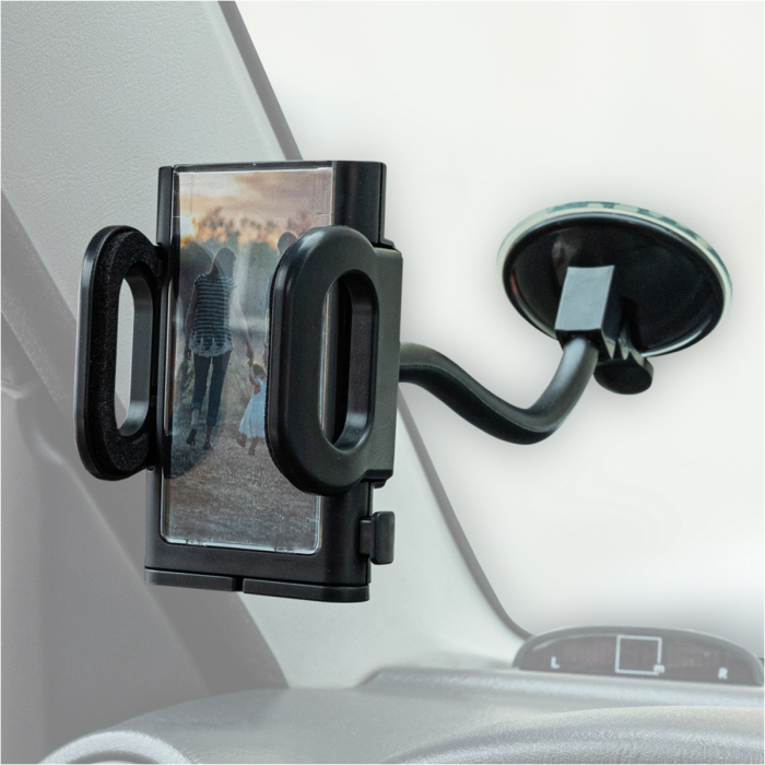 Держатель телефона на лобовое стекло SKYWAY гибкая ножка,черный - универсальный автомобильный держатель применяется для всех моделей телефонов, плееров, КПК или GPS с максимальной шириной 101 мм. Размеры зажима регулируется и фиксируется. Поворотный корпус с гибкой ножкой позволяет вращать устройство на 360°. Держатель надежный в использовании - крепится на прочную присоску к лобовому стеклу или на панель. Удобно и безопасно пользоваться в дороге. Устройство не выскальзывает и не мешает управлять автомобилем.