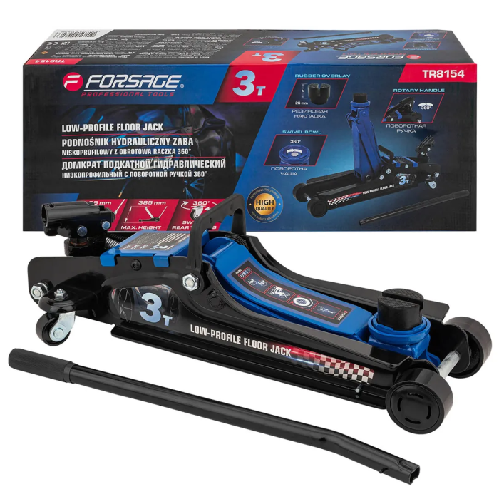 Домкрат подкатной гидравлический 3 т, 85-385 мм низкопрофильный с поворотной ручкой Forsage F-TR8154
