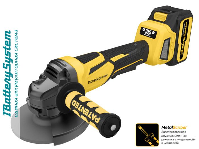 Углошлифмашина аккумуляторная Hanskonner HAG1812E