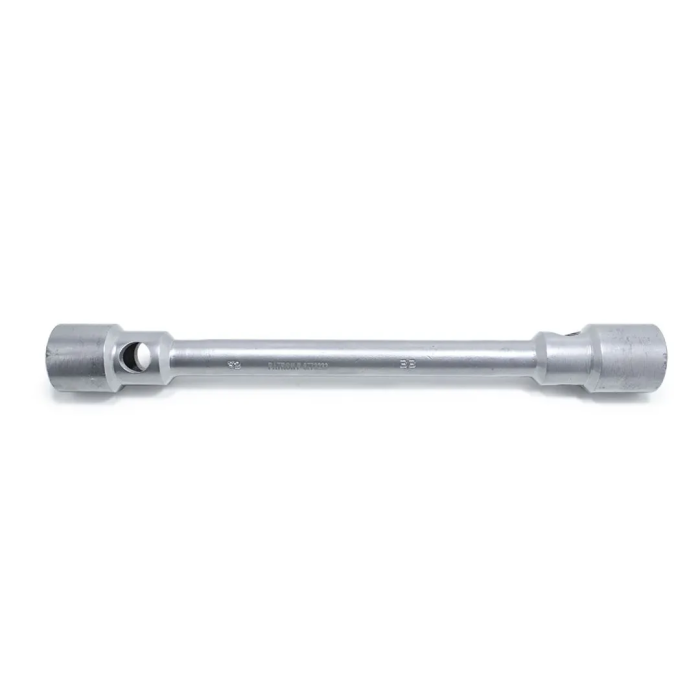 Ключ баллонный двусторонний усиленный с длиной 40 см используется для снятия покрышек, шиномонтажа грузовых транспортных средств, включая КАМАЗЫ и автобусы. Он имеет две несъемных торцевых шестигранных головки размером 32х33мм. Этот инструмент широко применяется на станциях технического обслуживания. Он обладает высокой устойчивостью к значительным нагрузкам и изготовлен из высококачественной углеродистой стали, которая защищена цинковым покрытием для предотвращения коррозии.