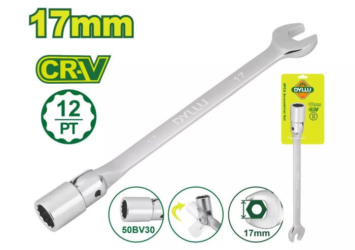 Ключ торцевой комбинированный с шарниром 17 мм DYLLU DTTH1E17