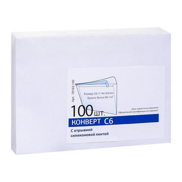 Конверты самоклеящиеся "Куверт" с отрывной лентой, C6, 100 шт, белый