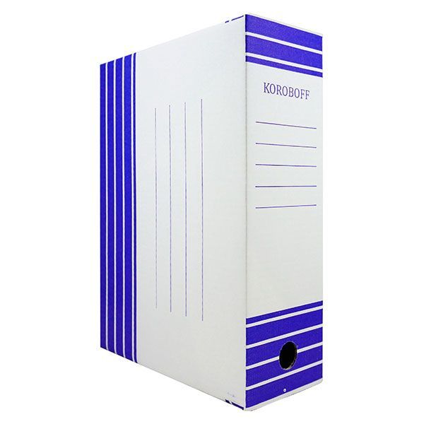 Короб из плотного картона. Позволяет хранить документы А4 формата на стеллажах. Имеется удобное отверстие для захвата при изъятии с полки, линованный идентификатор на корешке для подписи. Закрывается с помощью замка.