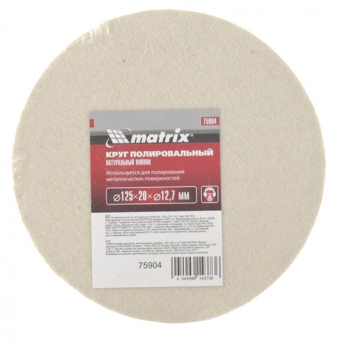 Круг полировальный из натурального войлока, 125х20х12,7 мм Matrix 75904, описание: