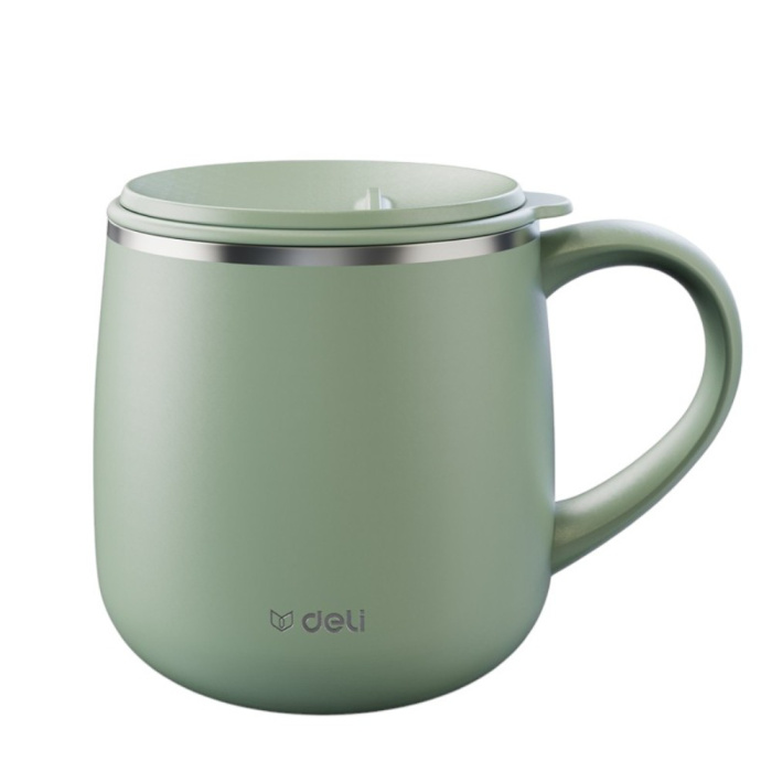 Кружка термическая "Deli", 380 мл., металл, оливковый