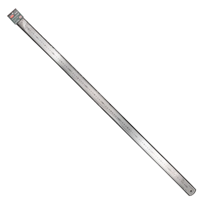 Линейка измерительная на 100см выполнена из нержавеющей стали, устойчива к коррозии и деформациям. Линейка двусторонняя и имеет шкалы сантиметровую, миллиметровую и дюймовую. Разметка четкая нанесена на металлическое основание методом гравировки, поэтому не стирается и остается читаемой даже после длительной эксплуатации. Закругленный конец линейки имеет отверстие для подвешивания. Предназначена для выполнения раскроя, вычерчивания лекал, чертежных и измерительных работ. Такой измерительный инструмент необходим не только в столярном деле, при инженерных построениях но и в школе и во многих других сферах.