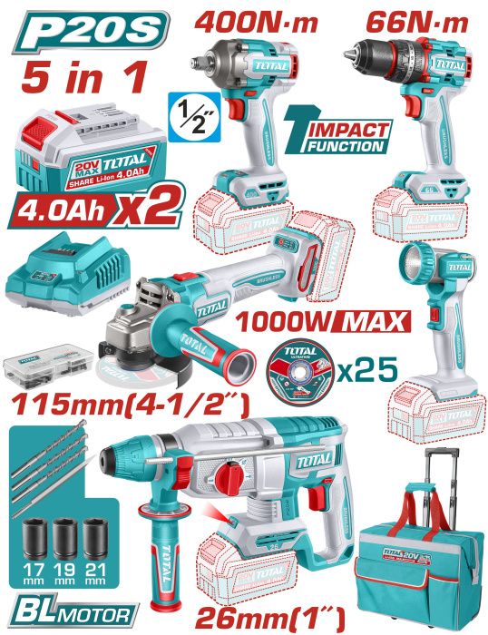 Набор аккумуляторного инструмента TOTAL TCKLI20592, описание: