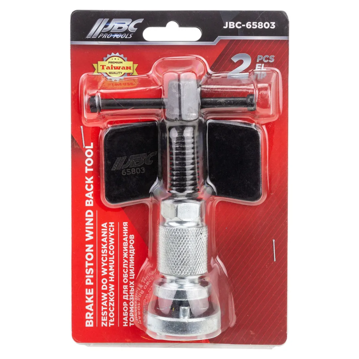 Набор из 2 предметов для обслуживания тормозных цилиндров предназначен для возврата поршней дисковых тормозных механизмов. Применяется при ремонте и обслуживании суппортов дисковых тормозов легковых автомобилей. Принцип действия данного инструмента основан на воздействии путем совмещения двух усилий, вращательного, перпендикулярно оси вращения поршня и осевого, для возврата в исходное положение поршня рабочего цилиндра тормозного суппорта. Комплектация: ключ 1шт, упорная планка 1шт. Для удобства хранения и транспортировки поставляется в блистере.