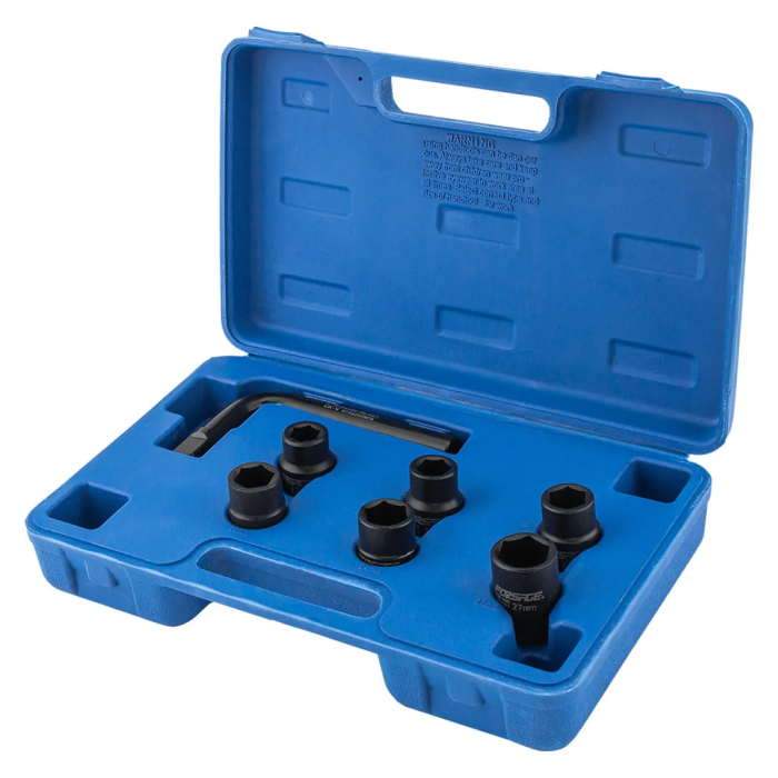 Универсальность применения: Этот набор подходит для грузового автомобильного ремонта, строительства, промышленных процессов и других областей, где требуется работа с высокими нагрузками и ограниченным доступом. Благодаря широкому диапазону размеров (17, 19, 21, 22, 24, 27 мм), вы сможете справиться с любыми задачами.