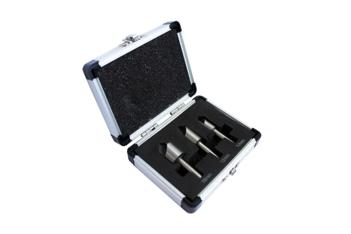 Набор зенкеров 3 предмета в кейсе - это осевые многолезвийные режущие инструменты, которые применяются для промежуточной или окончательной обработки отверстий, полученных предварительно сверлением, литьем, ковкой или штамповкой, с целью повышения их точности и уменьшения шероховатости обработанной поверхности. Набор состоит из трех инструментов с диаметрами 10, 12 и 16 мм. Зенкеры имеют специальную форму, которая позволяет создавать углубления для закрепления головок винтов и шурупов, хвостовик цилиндрической формы.
