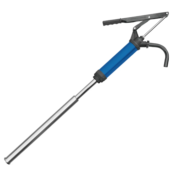Телескопический рычажный насос для перекачки масла — это профессиональное оборудование для удобного и эффективного дозированного отбора жидкостей (масла, смазок, технических жидкостей) из стандартных бочек объёмом от 50 до 205 литров. Насос оснащён телескопической всасывающей трубкой, которая автоматически регулируется по высоте бочки, и рычажным механизмом, обеспечивающим производительность 300 мл за один рабочий ход. Конструкция позволяет работать с различными типами жидкостей без необходимости наклона или перемещения бочки. Насос предназначен для использования в автосервисах, на производственных предприятиях, в складских и ремонтных зонах, обеспечивая безопасный, чистый и экономичный перелив технических жидкостей.