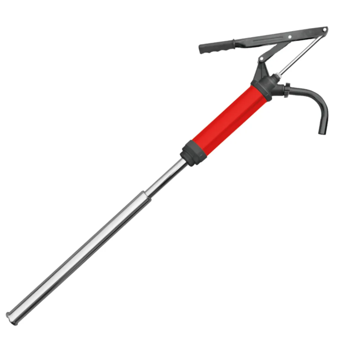 Телескопический рычажный насос для перекачки масла — это профессиональное оборудование для удобного и эффективного дозированного отбора жидкостей (масла, смазок, технических жидкостей) из стандартных бочек объёмом от 50 до 205 литров. Насос оснащён телескопической всасывающей трубкой, которая автоматически регулируется по высоте бочки, и рычажным механизмом, обеспечивающим производительность 300 мл за один рабочий ход. Конструкция позволяет работать с различными типами жидкостей без необходимости наклона или перемещения бочки. Насос предназначен для использования в автосервисах, на производственных предприятиях, в складских и ремонтных зонах, обеспечивая безопасный, чистый и экономичный перелив технических жидкостей.
