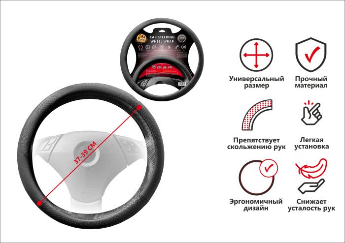 Оплетка на руль автомобиля размером "M" (37,5x8,5 см), выполненная из прочной кожи ПВХ, представляет собой стильный и практичный аксессуар для вашего автомобиля. Она идеально подходит для рулей диаметром 37-39 см, что делает её совместимой с большинством моделей. Материал оплетки отличается высокой износостойкостью, устойчивостью к повреждениям и простотой в уходе, что обеспечивает её долговечность даже при интенсивной эксплуатации. Благодаря эргономичной конструкции оплетка улучшает комфорт вождения, обеспечивая надежный и удобный хват, предотвращающий скольжение рук. Она защищает рулевое колесо от потертостей, царапин, выгорания и других повреждений, сохраняя его первоначальный вид на длительное время. Стильный дизайн с текстурой, имитирующей натуральную кожу, добавляет интерьеру автомобиля элегантности и завершенности. Оплетка легко устанавливается без использования специальных инструментов, что делает её практичным выбором для каждого автовладельца.