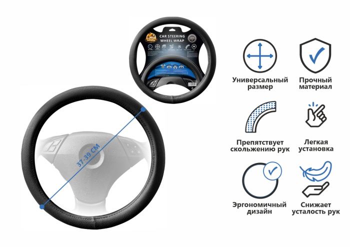 Оплетка на руль автомобиля размером "M" (37,5x8,5 см), выполненная из прочной кожи ПВХ, представляет собой стильный и практичный аксессуар для вашего автомобиля. Она идеально подходит для рулей диаметром 37-39 см, что делает её совместимой с большинством моделей. Материал оплетки отличается высокой износостойкостью, устойчивостью к повреждениям и простотой в уходе, что обеспечивает её долговечность даже при интенсивной эксплуатации. Благодаря эргономичной конструкции оплетка улучшает комфорт вождения, обеспечивая надежный и удобный хват, предотвращающий скольжение рук. Она защищает рулевое колесо от потертостей, царапин, выгорания и других повреждений, сохраняя его первоначальный вид на длительное время. Стильный дизайн с текстурой, имитирующей натуральную кожу, добавляет интерьеру автомобиля элегантности и завершенности. Оплетка легко устанавливается без использования специальных инструментов, что делает её практичным выбором для каждого автовладельца.
