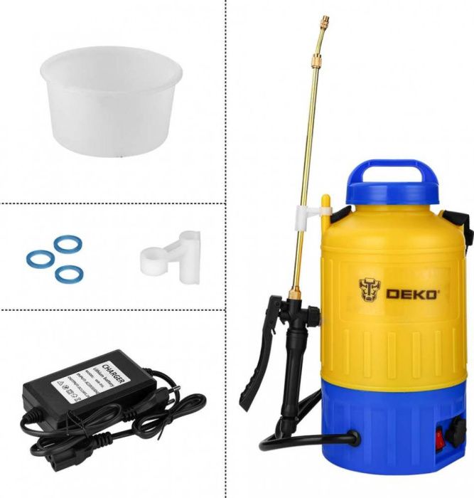 - Опрыскиватель садовый аккумуляторный DEKO DKSP09 используется для распыления воды и удобрений, дезинфекции, дезинсекции, мытья окон, машин и стен, защиты растений от вредителей.