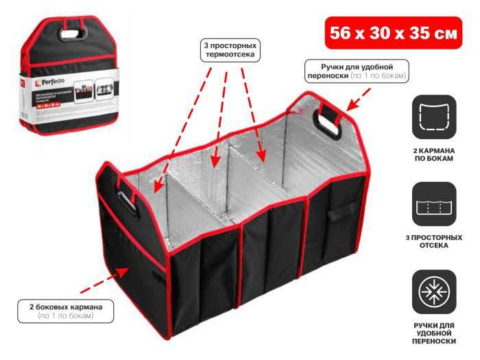 Органайзер в багажник автомобиля складной 56х30х35 см PERFECTO LINEA 40-563035