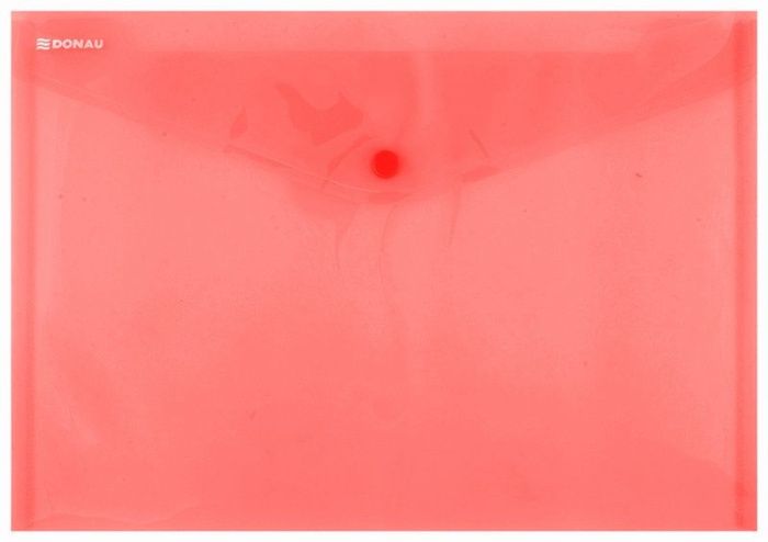 Папка-конверт на кнопке "Donau", C5, красный прозрачный