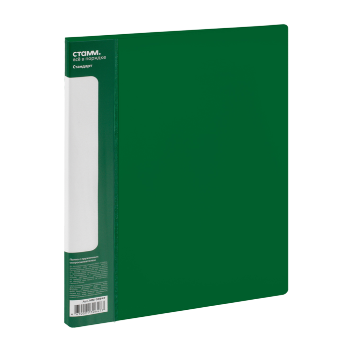 Папка-скоросшиватель А-611 "Стандарт" с карманом, пластик, зеленый