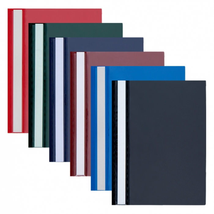 Папка-скоросшиватель "Panta Plast" — практичная и надежная папка формата А4 с панорамным дизайном. Оснащена передним презентационным карманом из высокопрозрачного ПВХ, который позволяет вставлять титульный лист для быстрого идентифицирования содержимого. На корешке расположена бумажная полоска для описания, что облегчает организацию документов. Изготовлена из прочного пластика с твердой задней стенкой из картона, покрытого фольгой, что позволяет размещать папку вертикально на полке или столе. Идеально подходит для хранения и презентации документов, чертежей, рисунков и других материалов как в учебных, так и в офисных и художественных целях.