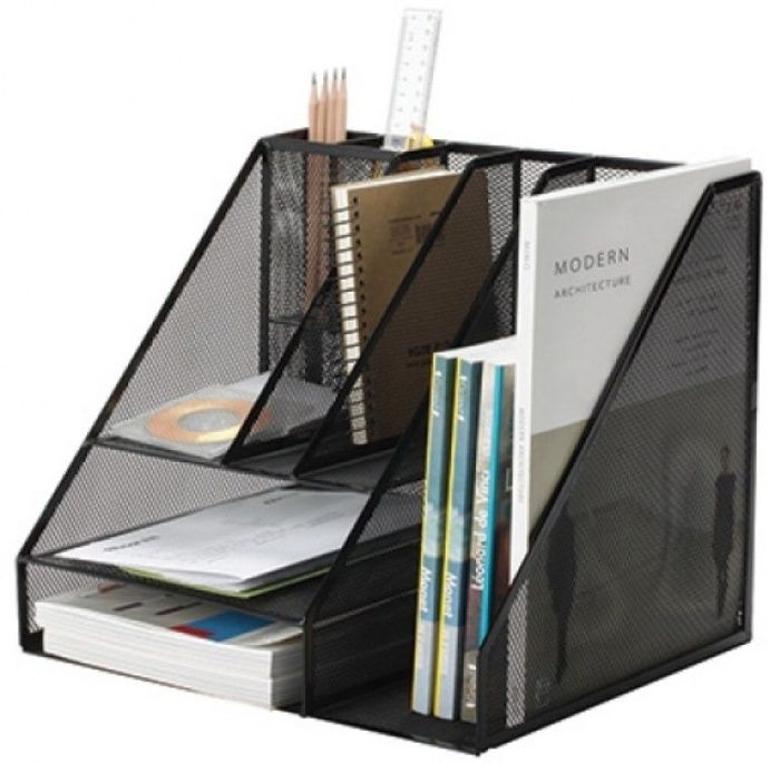 Подставка для канцелярских мелочей Q-connect выполнена из металлической сетки. Данная подставка вместительна, имеет несколько отделов для бумаг: 3 вертикальных, 2 горизонтальных, также оснащена 2-мя отделами для ручек и карандашей. Благодаря прорезиненным ножкам не царапает поверхность. Размеры 345×290×295 мм.