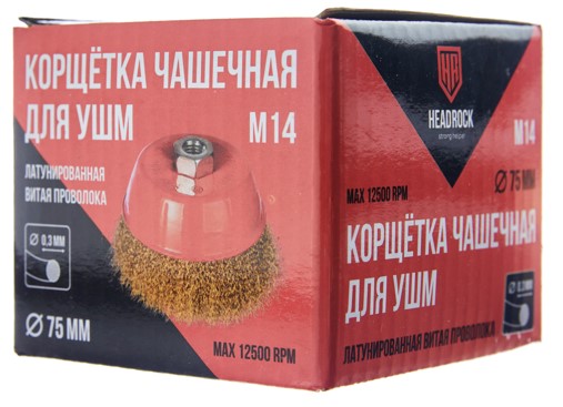 Щетка чашечная витая латунированная для УШМ 75 мм М14 HEADROCK 870-222-075, описание: