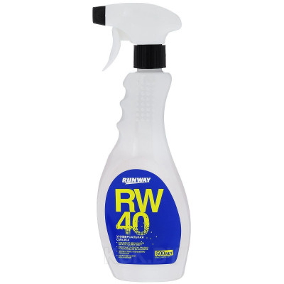 Смазка универсальная RUNWAY RW-40 500 мл - обладает отличными смазывающими и проникающими свойствами, широко используется в автомобилях и в быту, помогая деталям механизмов работать эффективно и исправно. Вытесняет влагу и защищает в дальнейшем от ее проникновения в механизм, устраняет скрипы движущихся деталей. Эффективно очищает обрабатываемые поверхности от ржавчины, клея и других загрязнений, смазывает и защищает их от коррозии и ржавчины. Позволяет быстро и без поломки разъединить проржавевшие и прикипевшие резьбовые соединения.