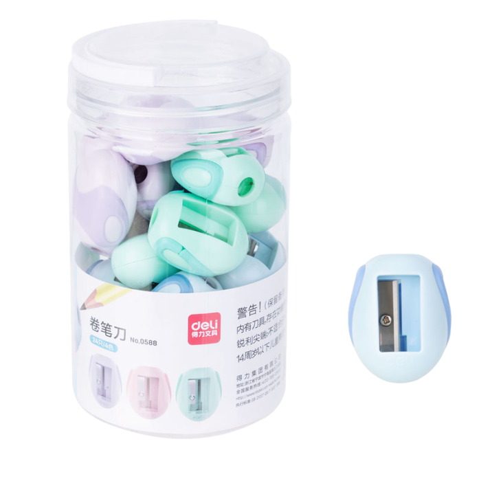 Точилка "Deli 0588" с одним отверстием - это компактное устройство в пастельных тонах, предназначенное для заточки карандашей. Цвет — ассорти. Цена указана за 1 штуку.