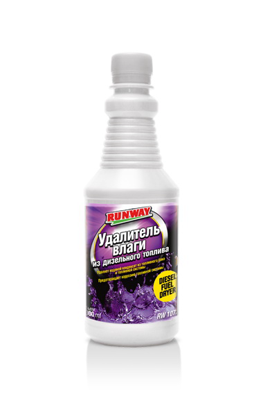 Runway удалитель влаги из дизельного топлива удаляет влагу из топливного бака и топливной системы дизельного двигателя. Предотвращает коррозию топливного бака, образование отложений и засорение форсунок дизельного двигателя, препятствует обледенению топливной системы в зимнее время года.