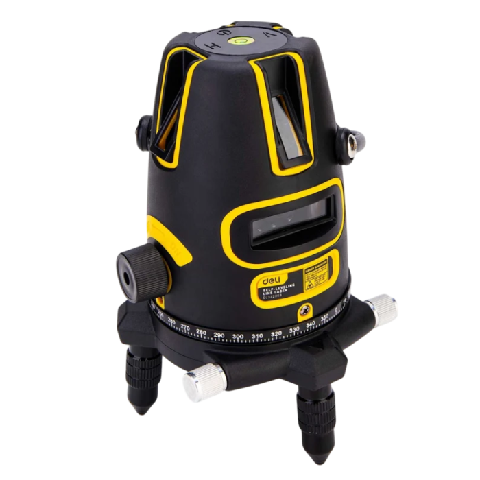 - Обладает ярким и хорошо заметным зелёным лучом. Может вращаться на 360° и обладает функцией автоматического выравнивания при наклоне до 3°, а при наклоне более 3° раздаётся звуковой сигнал.