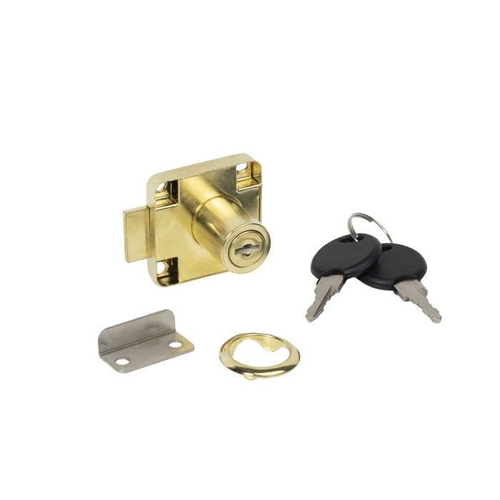 Замок предназначен для деревянных, ЛДСП, МДФ, фасадов толщиной 16-18 мм. Для монтажа данного типа замков необходимо высверлить отверстие для личинки цилиндра, сам же корпус замка крепится саморезами с обратной стороны фасада. С лицевой стороны фасада к замку монтируется декоративная накладкаТехнические характеристики: