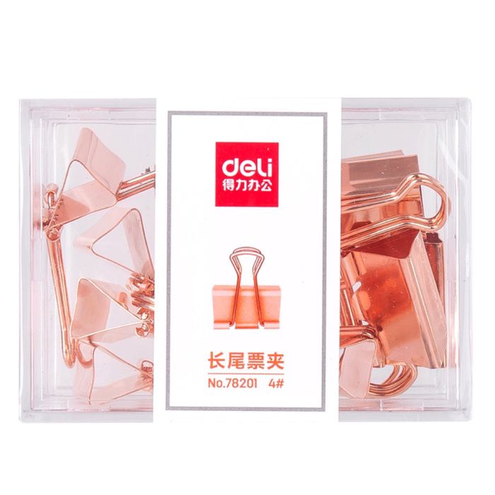 Зажим для бумаг "Deli", 25 мм, 12 штук, розовое золото